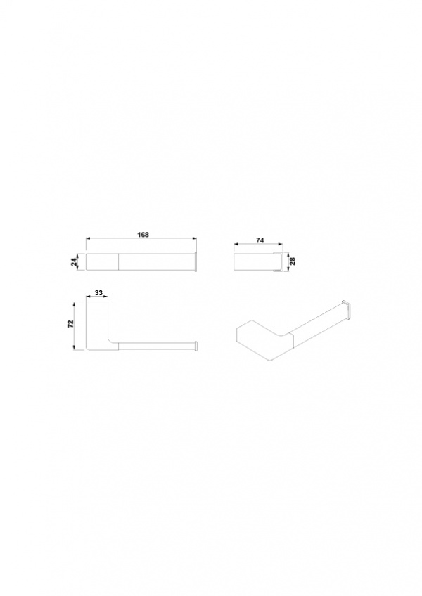 Portarrollos sin tapa. Acabado negro. Posibilidad de instalación adhesiva con 3M