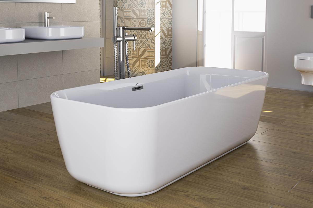 Su faldón integra el lateral y el frontal en una pieza única en forma de "L", lo que confiere un toque de sofisticación a la bañera.