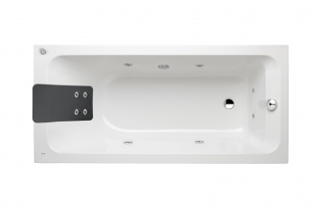 Emma Hidromasaje agua, pulsador electrónico, regulador de intensidad, sonda de nivel, desagüe automático, 4 jets laterales, 2 jets plantares, 4 jets dorsales y reposacabezas. / 63 kg. / 1 unidad palet.