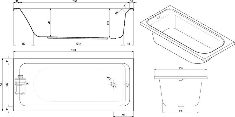Ref. Producto/Conjunto Medidas €/u 64332 Bañera hidromasaje agua, pulsador electrónico, regulador de intensidad y sonda de nivel. 170 x 75 cm 1.680,0 € Opciones 67447 Faldón “L” para bañera Emma de 170 x 75 cm. mano izquierda. 170 x 75 cm 460,0 € 67448 Faldón “L” para bañera Emma de 170 x 75 cm. mano derecha. 170 x 75 cm 460,0 € Accesorios 41480 Reposacabezas para bañera Emma rectangular. - INFORMACIÓN DE PRODUCTO