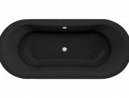 La bañera Ópera exenta, con acabados en blanco y en negro, está diseñada para ser el eje sobre el que gira el resto de los elementos del cuarto de baño.