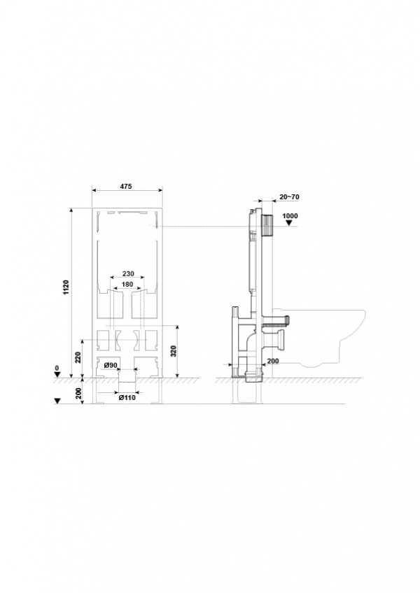 Ref. Producto/Conjunto Medidas €/u55485 WC Full Frame Eon Freestanding. Sistema de instalación para inodoro suspendido autoportante.