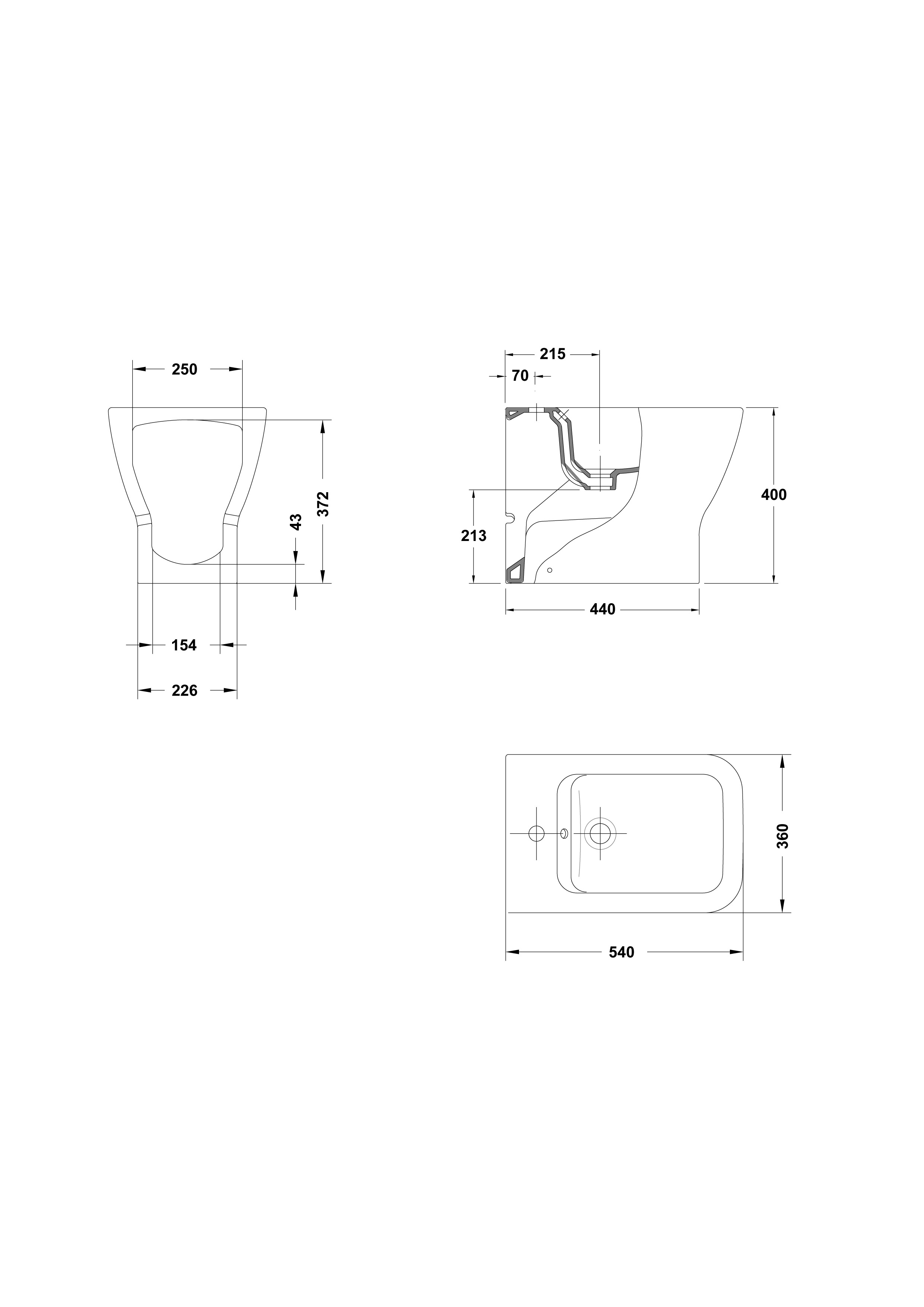 Bidé BTW de 54 x 36 cm. con juego de anclaje.