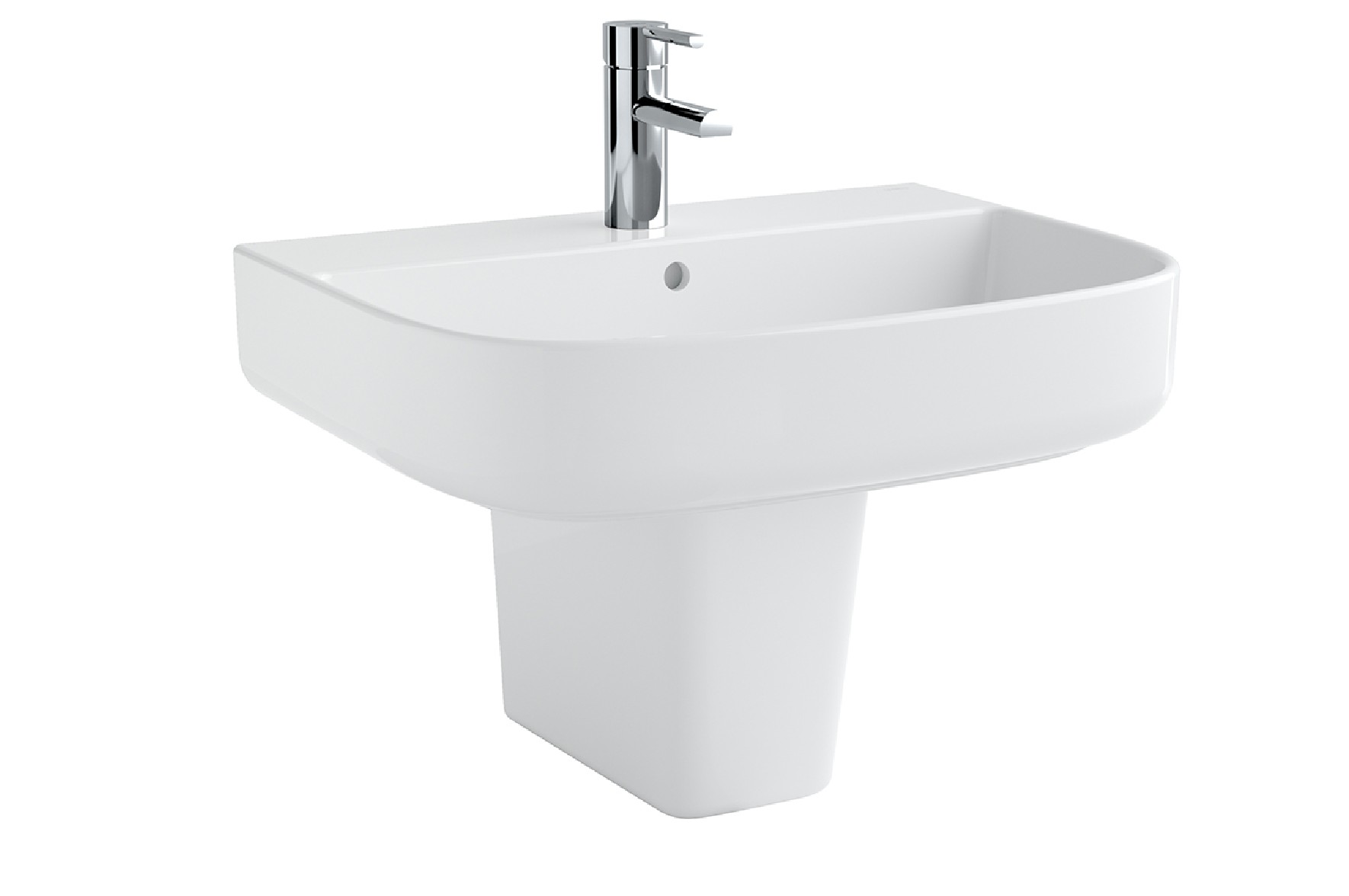 Lavabo de 55 x 45 cm. con rebosadero y juego de fijación. / 16 Kg./ 24 unidades palet. Posibilidad de instalación con pedestal, semipedestal o mural. Compatible con pedestal y semipedestal Emma Square y Smart.
