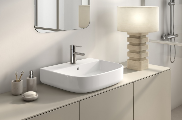 Lavabo de 65 x 45 cm. con rebosadero. / 18 Kg./ 24 unidades palet. Instalación sobre-encimera.
