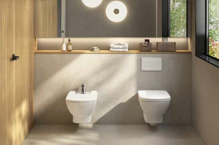 Inodoro de 53 x 35 cm. salida horizontal. / 22 kg. / 24 unidades. Posibilidad de instalación con soporte mural.