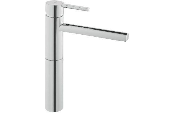 Monomando lavabo con caño alto y largo y apertura en frío.Cartucho ecológico con apertura en dos pasos. Enlaces de alimentación flexible de 3/8'' . Aireador antivandálico: Con filtro antipartículas integrado y protección contra la cal. Instalación con válvula up-down.