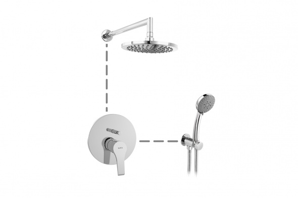 Monomando empotrado para ducha (2 salidas). Accesorios opcionales: Rociador circular de Ø 20 cm. Sistema antical ‘easy clean’. Brazo a pared cilíndrico.