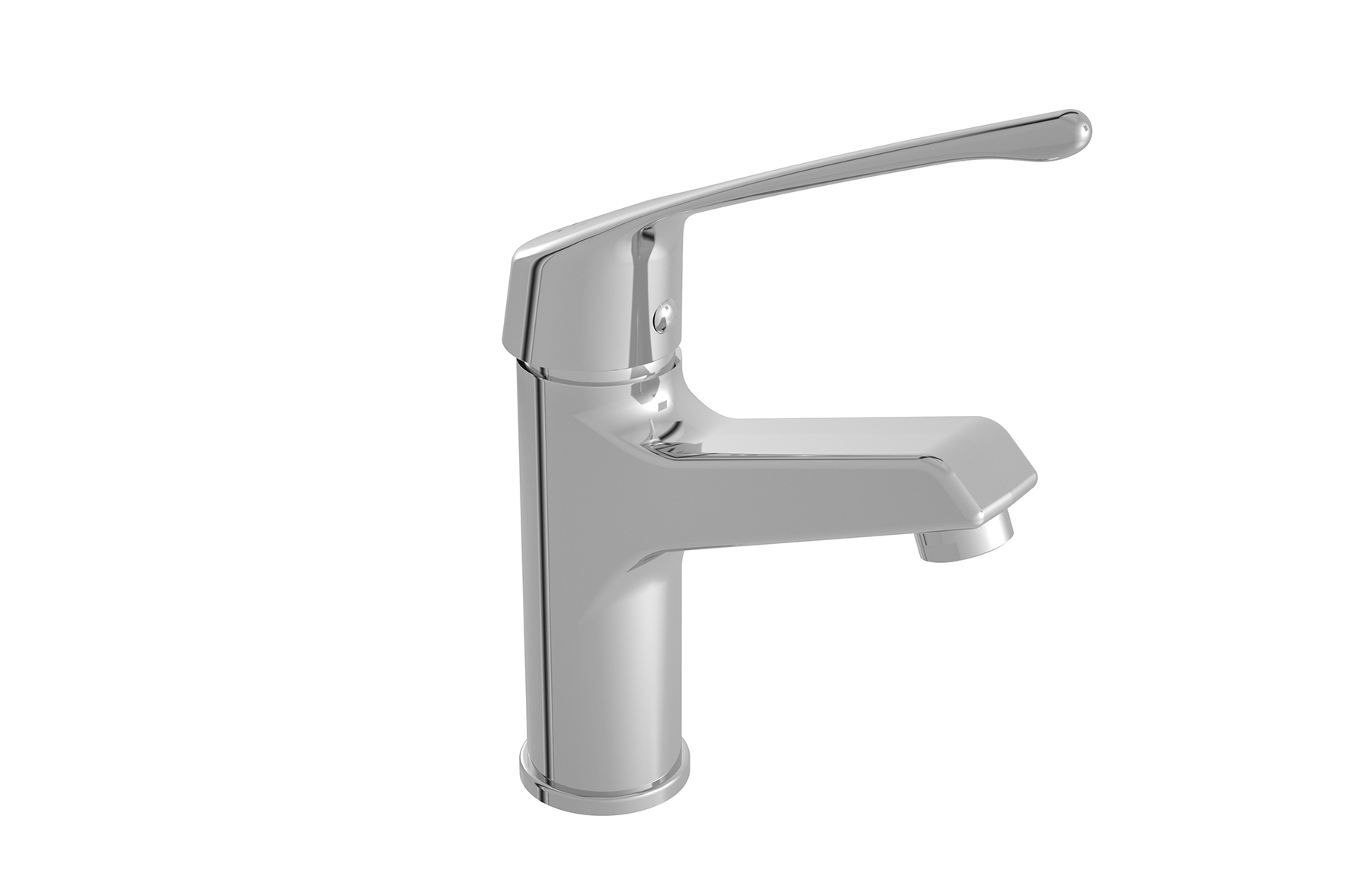 Monomando lavabo con maneta gerontológica. Incorpora un limitador de caudal a 5 l/. Enlaces de alimentación flexible de 3/8”. Instalación con válvula up-down.