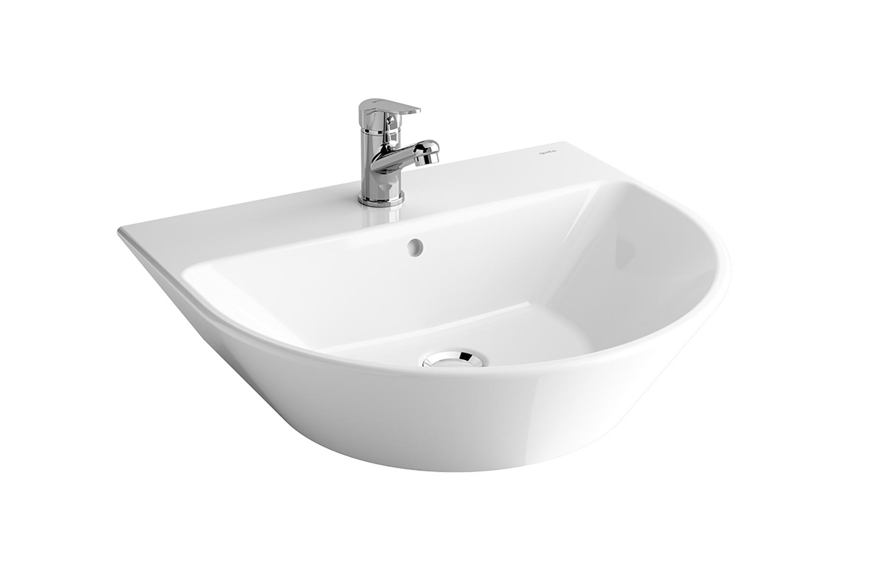 Lavabo Aris de 55x49 cm con rebosadero y juego de fijación. / 17 kg / 24 unidades palet. Instalación sobre-encimera.