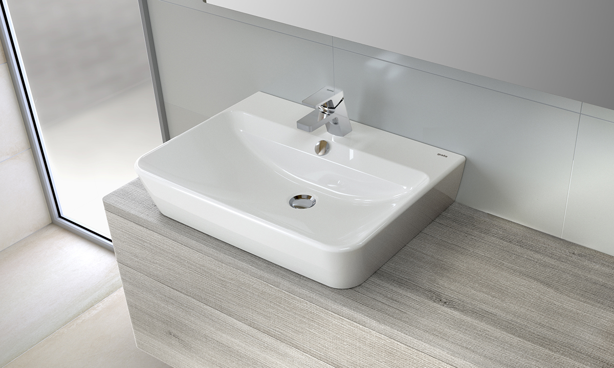Lavabo de 55 x 45 cm. con juego de fijación. / 16 kg. / 16 unidades palet. Posibilidad de instalación con pedestal, semipedestal, mural o sobre-encimera. Combinable con muebles Emma.