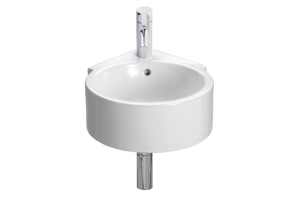 Lavamanos Isla de 39,5cm. con rebosadero y juego de fijación. / 11,2 kg. / 32 unidades palet. Lavabo para instalación mural en rincón.
