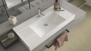 Los lavabos de sobre-mueble te permiten ganar funcionalidad y perfecta integración con el mueble, resultando en espacios contemporáneos y llenos de equilibrio y armonía.