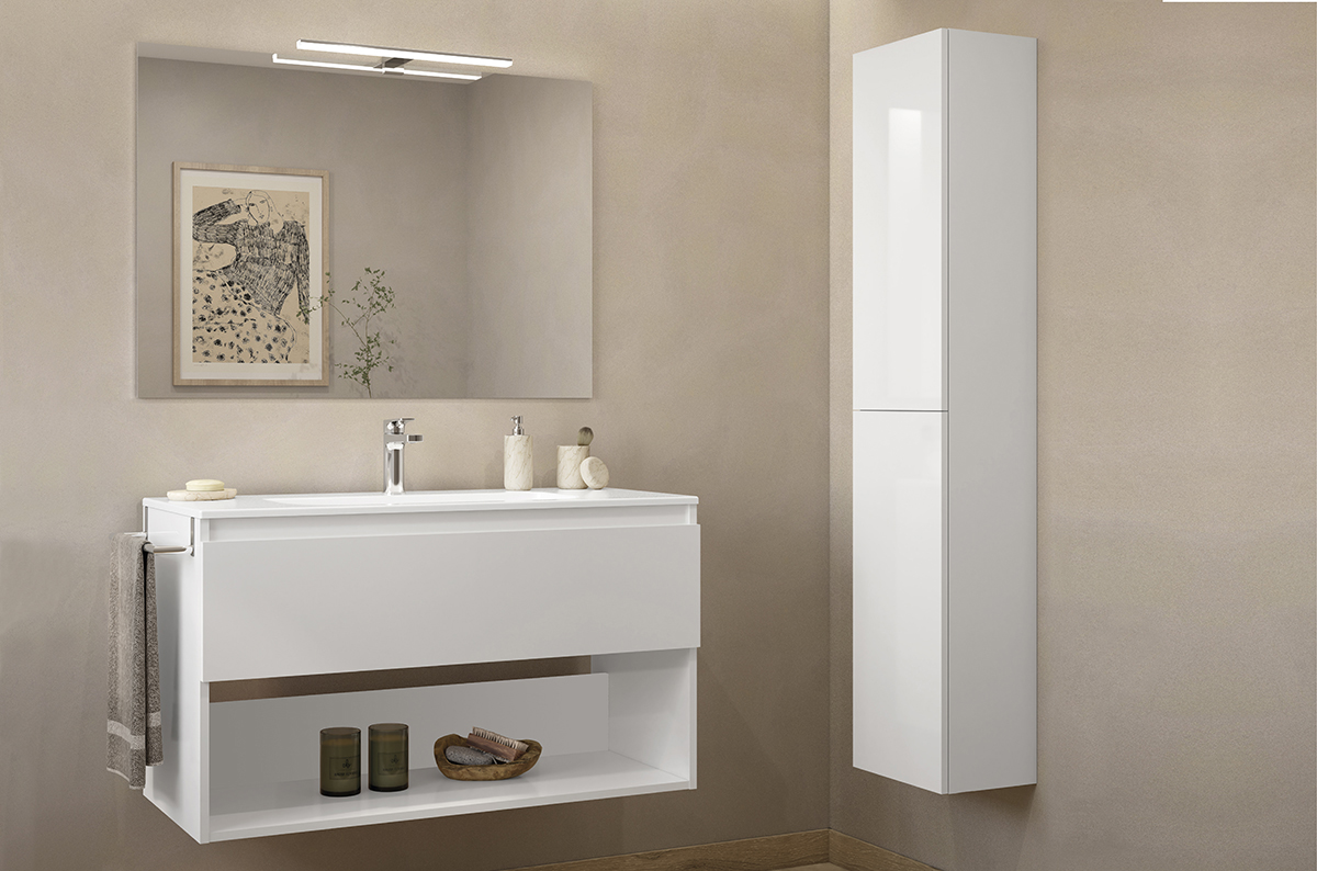 Mueble Daily 60x46 cm acabado blanco brillo. 1 cajón y 1 hueco.