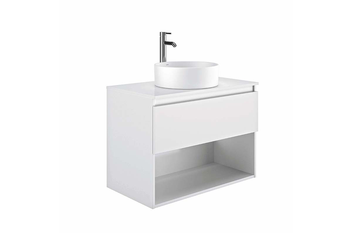 Mueble Daily 80x45 cm con encimera acabado blanco brillo. 1 cajón + 1 hueco.