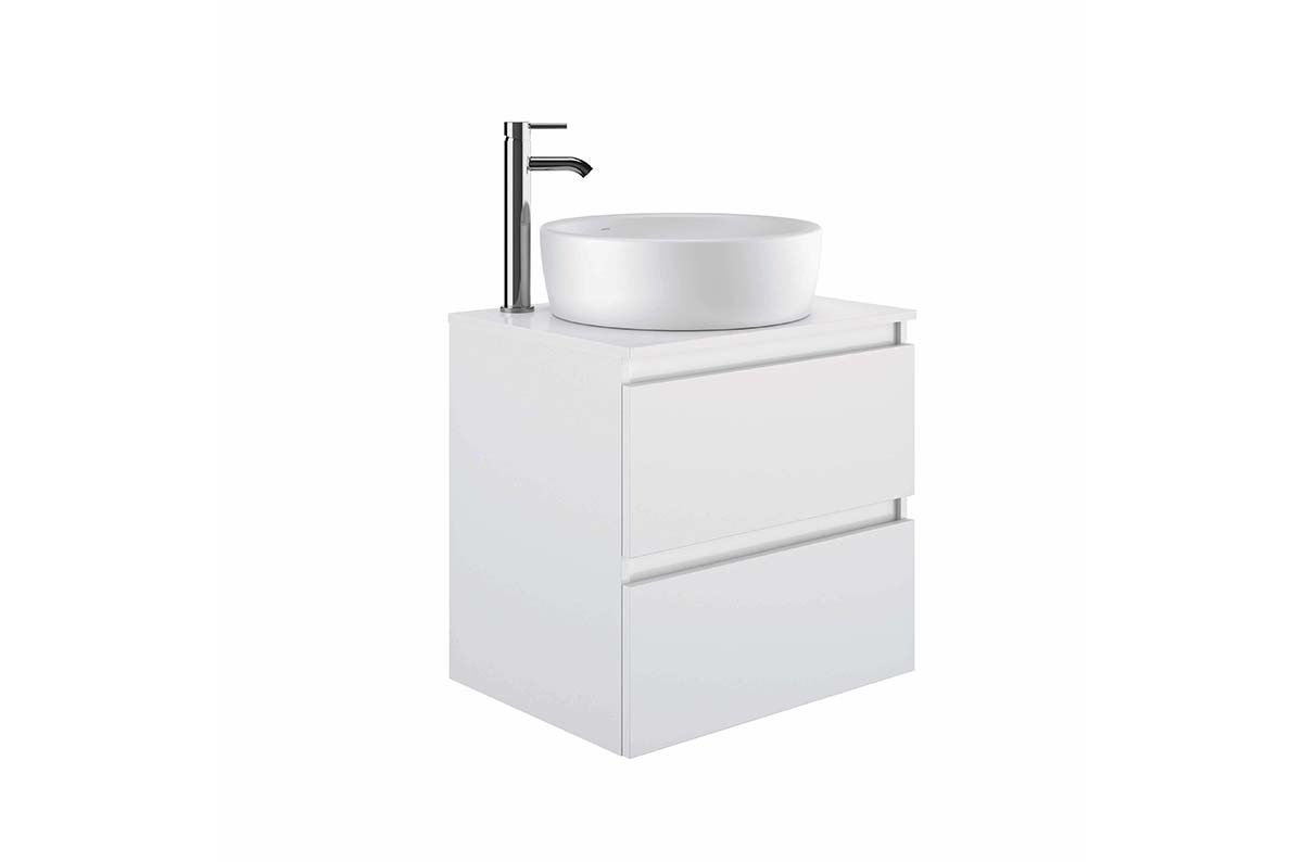 Mueble Daily 60x45 cm con encimera acabado blanco brillo. 2 cajones.