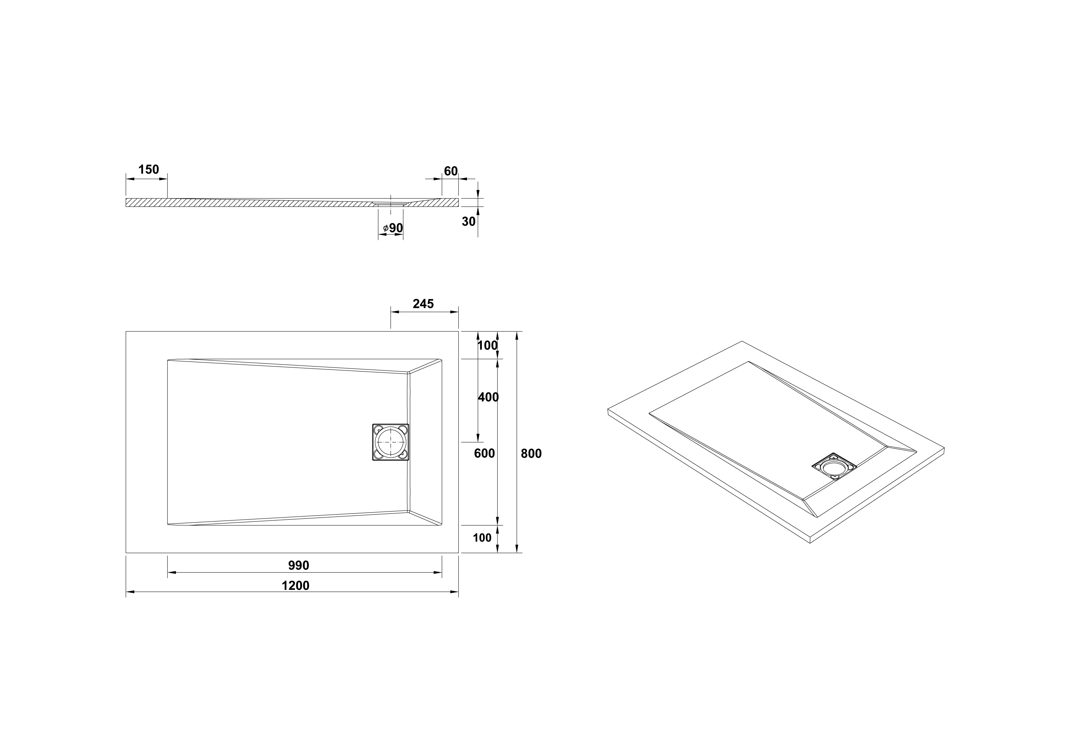 Ref. Producto/Conjunto Medidas €/u63960 Plato de ducha rectangular base surface 120 x 80 x 3 cm 440,0 € - INFORMACIÓN DE PRODUCTO
