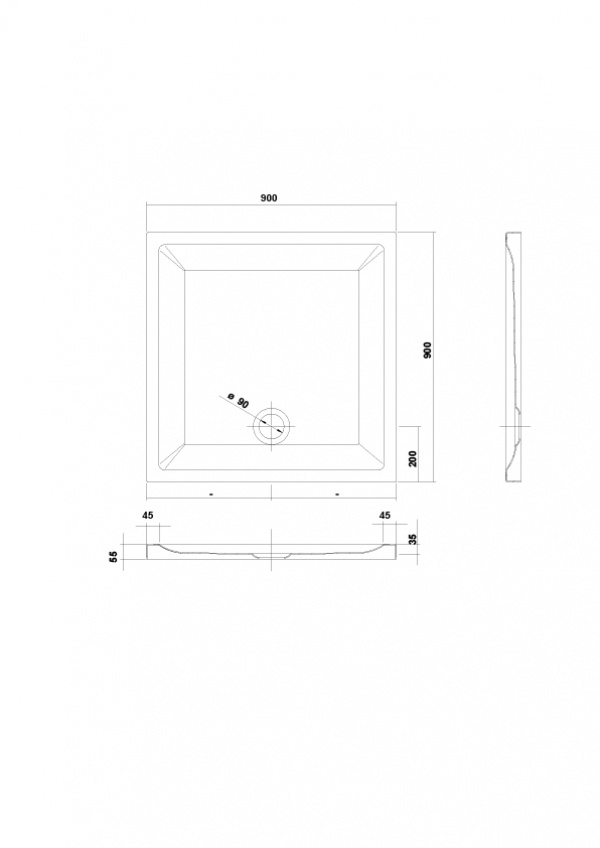 Vita-N 90 x 90 cm. cuadrado 5,5 cm. de altura. Válvula de desagüe de 90 mm no incluida / 10 kg. / 10 unidades palet.